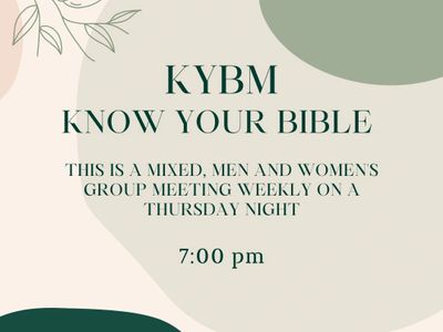 The Know Your Bible Mixed (KYBM) small group meets every Thursday 7pm – 9 pm at the Church. KYBM is a ministry for men and women using Bible study material produced by CWCI International. We welcome all to join us.